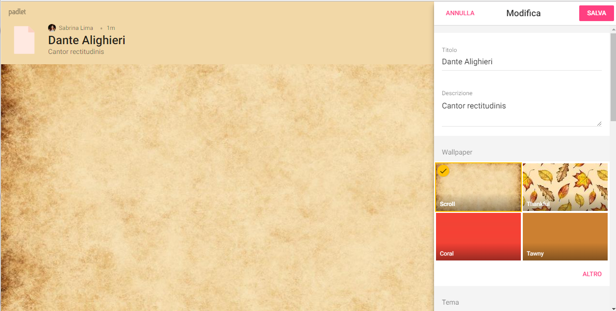 Da "MODIFICA" (rotellina in alto a destra) attribuire un titolo, scegliere uno stile: